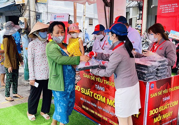 (CT) - Ngày 26-6-2021, Công ty TNHH Hồng Ðức tổ chức phát 300 phần cơm, mỗi phần trị giá 20.000 đồng, cho người dân có hoàn cảnh khó khăn trên địa bàn TP Cần Thơ. Theo kế hoạch (từ 26-6 đến 13-9-2021), các Head Hồng Ðức trên địa bàn TP Cần Thơ đều tổ chức phát cơm miễn phí cho người nghèo vào lúc 11 giờ trưa hàng ngày, nhằm giúp bà con có hoàn cảnh khó khăn vượt qua khó khăn mùa dịch COVID-19.