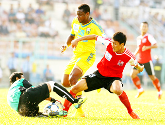 Tiền đạo Dosso Sindu (39) của Hùng Vương An Giang chưa hiệu quả đến thời điểm này. Ảnh: DƯƠNG THU |