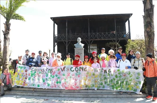 Đoàn các thành viên Hội Ái mộ bác sĩ Yersin và các em học sinh tham quan trải nghiệm “Hành trình theo bước chân bác sĩ A.Yersin” cùng vẽ bức tranh hoa tay ngay trước khu nhà làm việc 2 tầng trên đỉnh Hòn Bà.