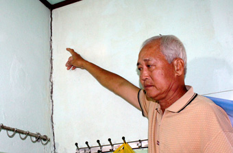 Nhiều tháng qua, đơn vị thi công cầu Phó Tiên không sửa chữa, khắc phục cho ngôi nhà ông Huỳnh Hữu Khoa. |