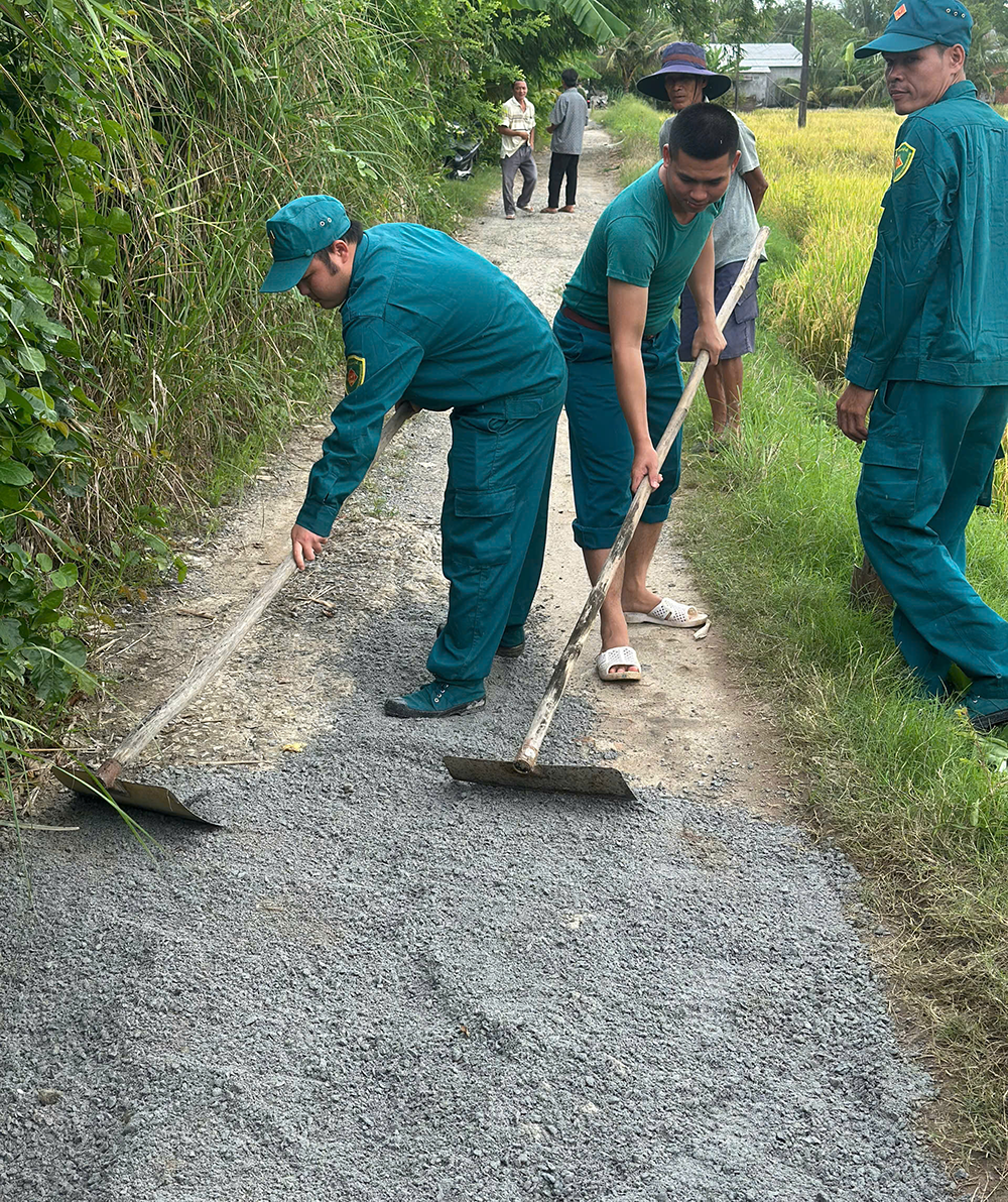 Dân quân xã Cờ Đỏ giúp dân nâng cấp đường giao thông.