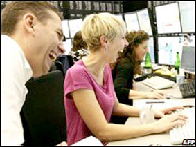 Nụ cười đang trở lại với các nhà đầu tư chứng khoán. Ảnh: AFP |