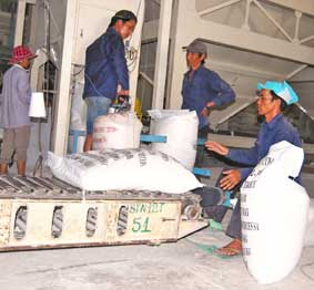 Gạo được xem là hàng hóa xuất khẩu mạnh của Việt Nam tại thị trường Trung Đông và châu Phi. Trong ảnh: Đóng gạo xuất khẩu tại Công ty Lương thực Sông Hậu.