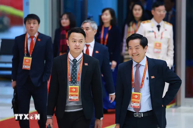 Các đại biểu đến dự ngày làm việc thứ tư Đại hội XIV của Đảng, sáng 22/1. (Ảnh: TTXVN)