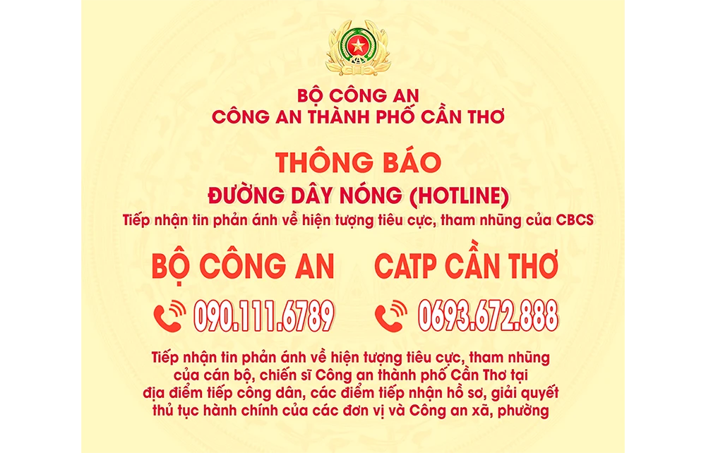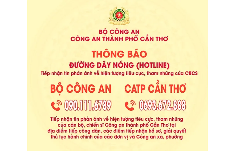 Thông báo đường dây nóng tiếp nhận tiêu cực trong lực lượng công an