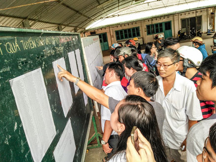 Nhiều phụ huynh xem kết quả học sinh trúng tuyển vào lớp 10 năm học 2016-2017 vào Trường THPT Châu Văn Liêm. |
