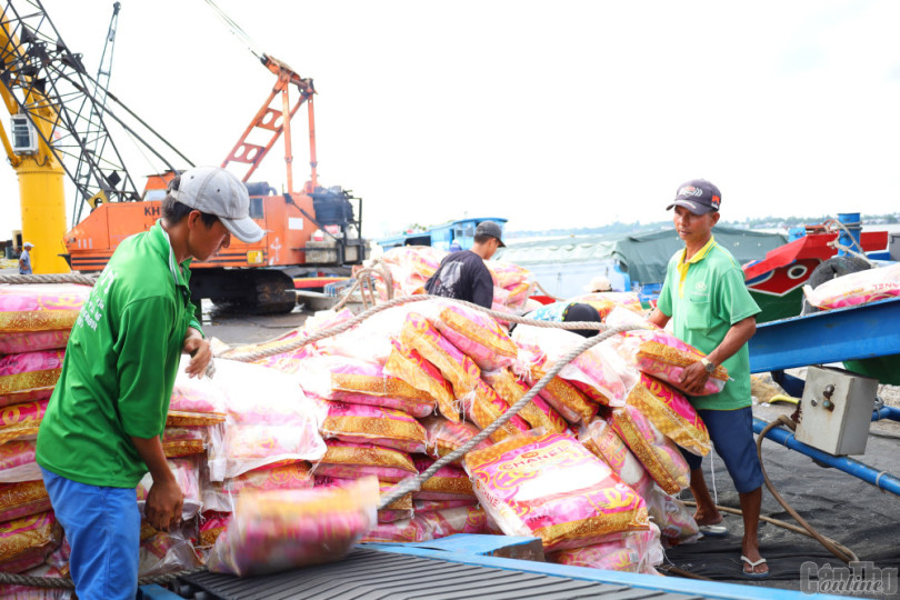 Hoạt động xuất khẩu gạo tại Cảng Tân Cảng Thốt Nốt. Ảnh: N.H