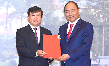 Thủ tướng Nguyễn Xuân Phúc trao Quyết định 1528/QĐ-TTg cho lãnh đạo địa phương. Ảnh: VGP/quang hiếu