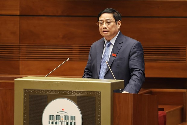 Thủ tướng Phạm Minh Chính phát biểu tại Kỳ họp thứ hai, Quốc hội khóa XV. (Ảnh: TTXVN)