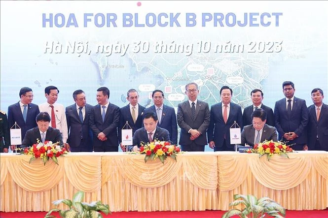 Thủ tướng Phạm Minh Chính chứng kiến ký kết thoả thuận khung Lô B. Ảnh: Dương Giang-TTXVN