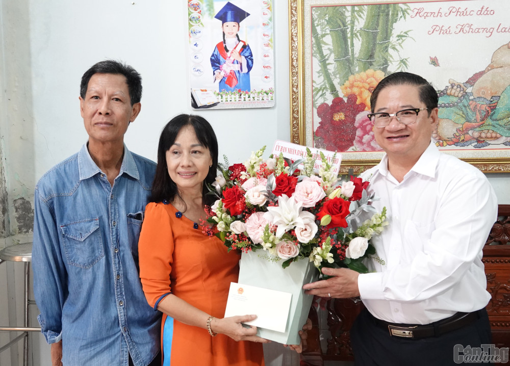 Đoàn đã đến thăm gia đình nhà giáo Lưu Minh Trúc Nam, giáo viên Trường THCS Đoàn Thị Điểm (quận Ninh Kiều). Với 33 năm gắn bó với nghề giáo viên, thầy Nam đạt rất nhiều thành tích, được Chủ tịch nước phong tặng danh hiệu Nhà giáo Ưu tú vào năm 2021, được Thủ tướng Chính phủ tặng Bằng khen vào năm 2022. Vợ thầy Nam là cô Nguyễn Thị Thu Lan, nguyên là giáo viên Trường THPT Phan Ngọc Hiển (quận Ninh Kiều), vừa về hưu sau 30 năm dạy học.