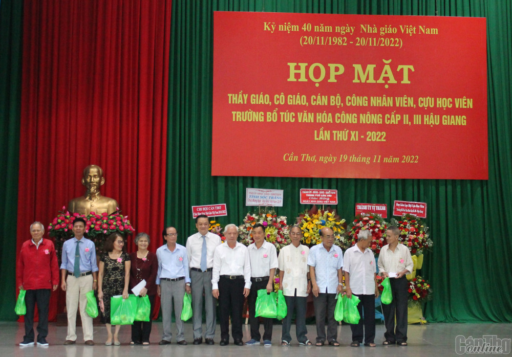 * Cũng trong sáng 19-11, tại Trường Chính trị TP Cần Thơ, hơn 400 thầy cô, cán bộ, công nhân viên, cựu học viên Trường Bổ túc Văn hóa Công Nông cấp II, III Hậu Giang dự họp mặt kỷ niệm 40 năm Ngày Nhà giáo Việt Nam. Đến dự có ông Dương Tấn Hiển, Phó Chủ tịch Thường trực UBND TP Cần Thơ; ông Lâm Hoàng Nghiệp, Phó Chủ tịch Thường trực UBND tỉnh Sóc Trăng; ông Nguyễn Hữu Tình, Bí thư Thành ủy Vị Thanh, tỉnh Hậu Giang; cùng lãnh đạo, nguyên lãnh đạo TP Cần Thơ, tỉnh Sóc Trăng và Hậu Giang qua các thời kỳ.