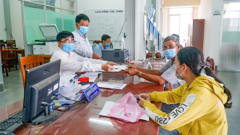 Công chức Bộ phận Một cửa phường Trường Lạc giải quyết tốt thủ tục hành chính của người dân.
