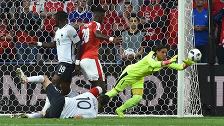 Thủ thành Sommer của Thụy Sĩ cũng đã chơi chắc chắn trong hiệp 1. ảnh: AFP/Getty