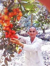 Ông Võ Văn Hớn trong vườn chôm chôm đạt tiêu chuẩn GAP. |