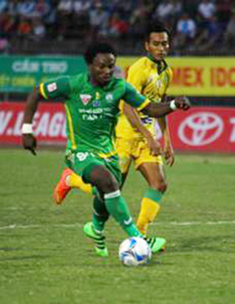 Một pha bứt tốc độ của Oseni - tiền đạo của Cần Thơ trong trận gặp Đồng Tháp. Ảnh: NGUYỄN MINH |