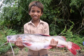 Chú bé với thông điệp “Tôi muốn ăn cá chứ không muốn ăn điện”! Ảnh tài liệu do Hội nghị “Môi trường và nguồn sống trên sông MêKông” cung cấp. |