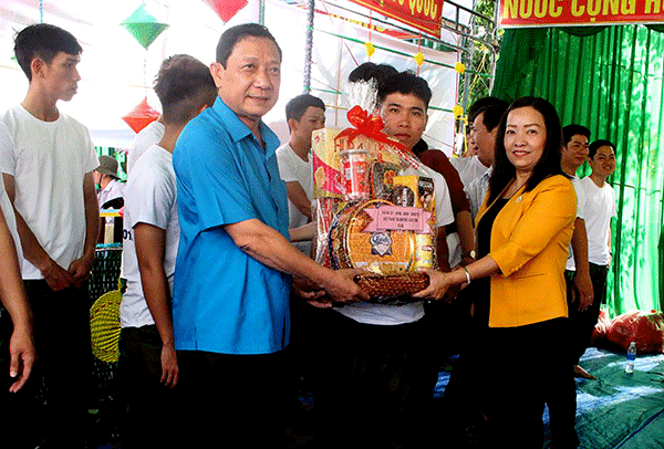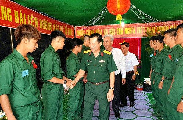 Lãnh đạo thành phố thăm, khích lệ tinh thần thanh niên chuẩn bị lên đường nhập ngũ tại huyện Phong Điền. Ảnh: Hồng Vân