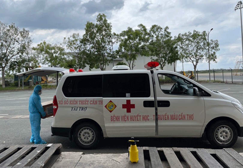 Tiếp nhận 1.000 đơn vị máu được chuyển tới bằng đường hàng không
