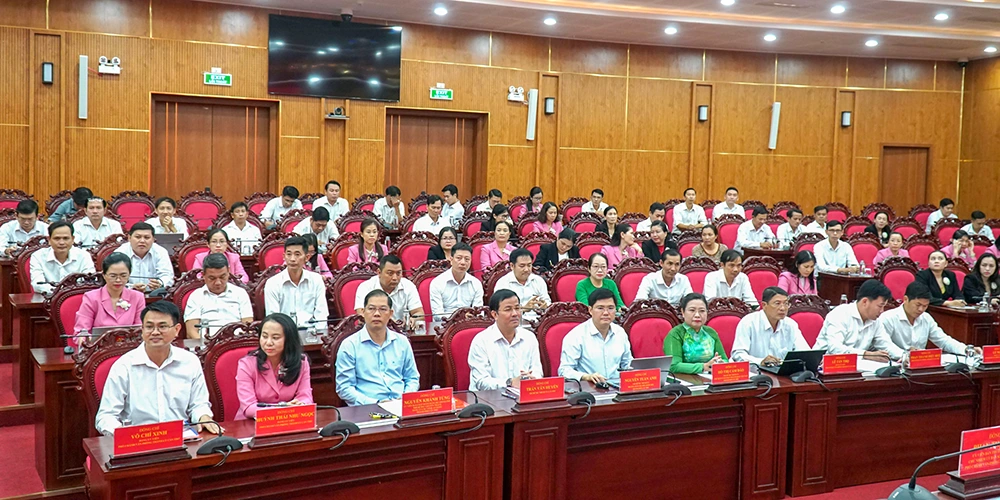 Thường trực Thành ủy và cán bộ, đảng viên, công chức, viên chức, người lao động Văn phòng Thành ủy dự hội nghị. Ảnh: ANH DŨNG