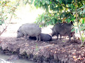 Trang trại nuôi heo rừng của chị Văn Thị Ngọc Luyến ở xã Đông Thạnh, huyện Châu Thành, tỉnh Hậu Giang hoạt động có hiệu quả. Ảnh: VĂN LÂM |