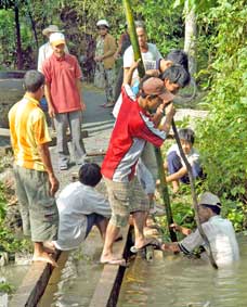 22 tháng Chạp. Hướng dẫn đi quanh co trong con đường rợp mát bóng tre xanh, chị Lê Thùy Hương, Chủ tịch Hội Phụ nữ xã Giai Xuân, huyện Phong Điền đưa tôi đến Rạch Ông Tường, ấp Thới Bình. Chưa đến nơi, đã nghe râm ran tiếng hò dô ta và tiếng cười nói rộn ràng. Đông đảo người dân trong rạch, từ những cậu học trò cấp hai đến các cụ ông cao tuổi cùng hợp sức dỡ đan, đóng cọc, bắc lại cây cầu bị hư. Các chị, các cô thì “tiếp tế” bánh mì, nước uống. Được biết, kinh phí làm cầu do Tổ tiết kiệm vay vốn phụ nữ ấp vận động đóng góp. Chị Trần Thị Xuân Lan, Tổ trưởng nói: “Chúng tôi làm cầu đón Tết. Ai cũng vui vẻ góp của góp công, để mấy ngày Xuân xóm mình thêm đẹp, bà con đi lại thuận lợi, an toàn”.