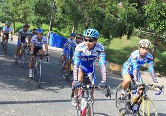 Các VĐV đội tuyển xe đạp nam Cần Thơ. |