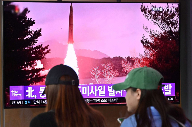 Người dân Hàn Quốc xem tin tức về vụ thử tên lửa của Triều Tiên ngày 13-9. Ảnh: AFP