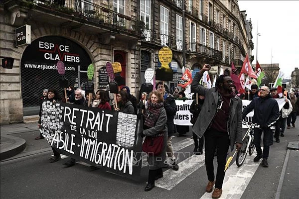 Biểu tình phản đối ban hành Luật nhập cư diễn ra tại thành phố Bordeaux ngày 21-1. Ảnh: AFP/TTXVN