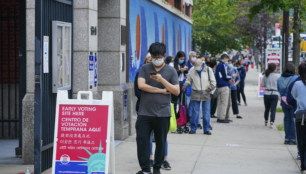 Các cử tri người Mỹ gốc châu Á xếp hàng chờ bỏ phiếu bầu Tổng thống Mỹ năm 2020. Ảnh: AP