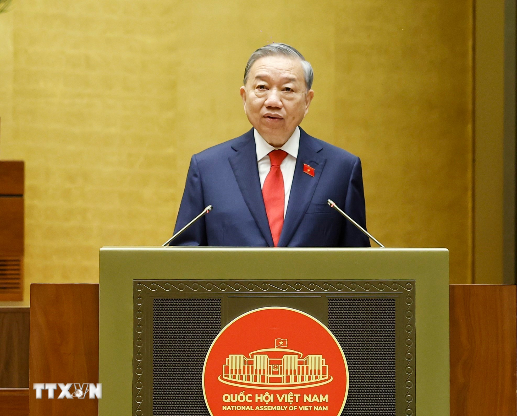 Dưới cờ đỏ sao vàng thiêng liêng của Tổ quốc, Tổng Bí thư, Chủ tịch nước Tô Lâm đã tuyên thệ trước Quốc hội, đồng bào, đồng chí, cử tri cả nước và phát biểu nhậm chức.