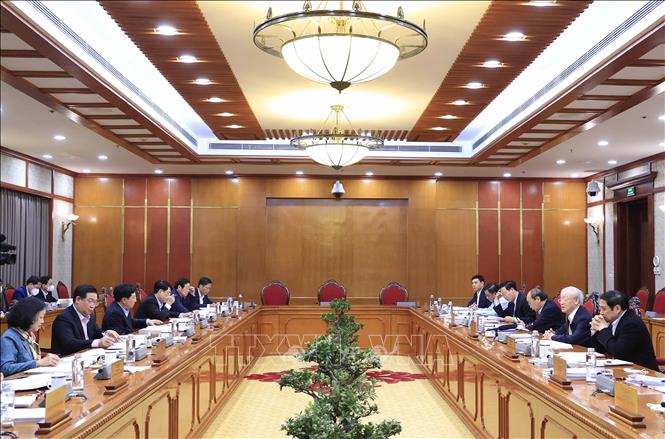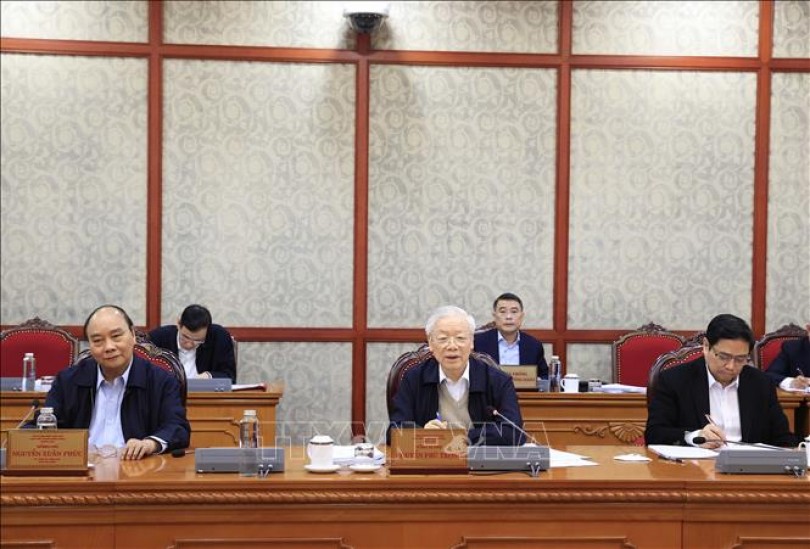 Tổng Bí thư Nguyễn Phú Trọng chủ trì họp Bộ Chính trị. Ảnh: Thống Nhất/TTXVN