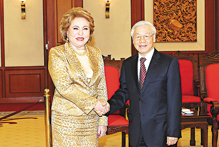 Tổng Bí thư Nguyễn Phú Trọng tiếp Chủ tịch Hội đồng Liên bang Nga