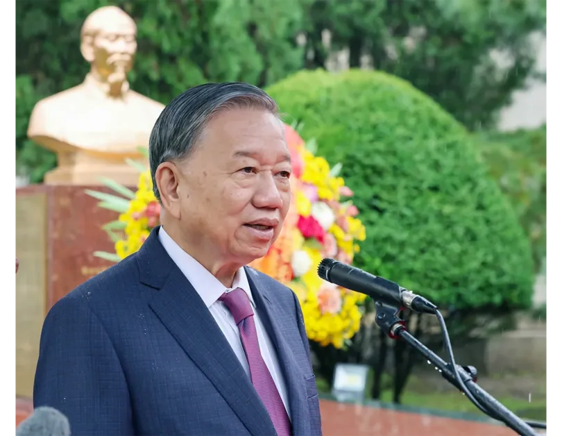 Tổng Bí thư Tô Lâm phát biểu tại Lễ khánh thành tượng Chủ tịch Hồ Chí Minh.