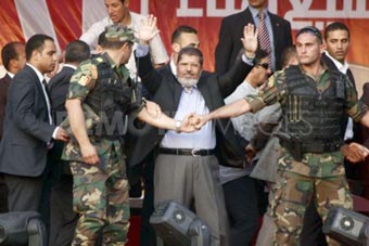 Quân đội Ai Cập đã không còn “bảo vệ” Tổng thống Morsi (giữa) như trước đây. Ảnh: AP |