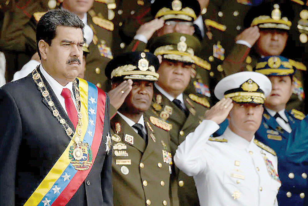 Tổng thống Maduro (trái) bị tấn công khi đang dự một sự kiện của quân đội. Ảnh: AFP
