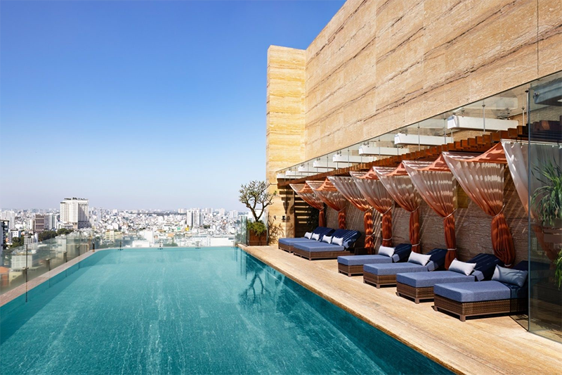 Nếu Park Hyatt mang vẻ tĩnh lặng của một dinh thự cổ, thì Hotel des Arts Saigon lại đại diện cho nhịp sống hiện đại và sành điệu. Hồ bơi vô cực trên tầng thượng của khách sạn này là một trong những điểm cao nhất thành phố.