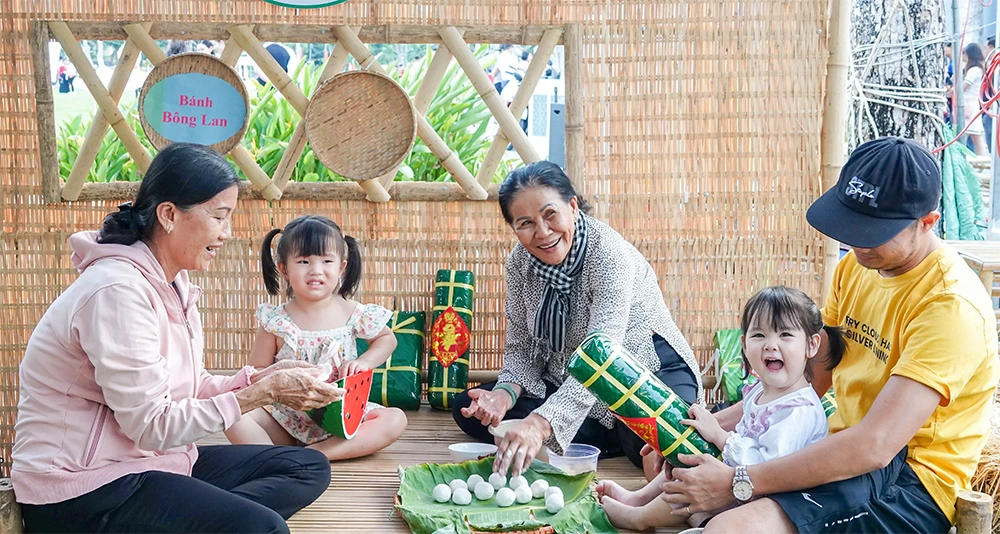 Hoạt động trình diễn, trải nghiệm làm bánh dân gian tại Lễ hội Bánh dân gian Nam Bộ. Ảnh: DUY KHÔI