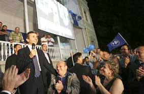 Tỉ phú Ivanishvili phát biểu "mừng chiến thắng" trước người ủng hộ tối 1-10. Ảnh: Reuters |