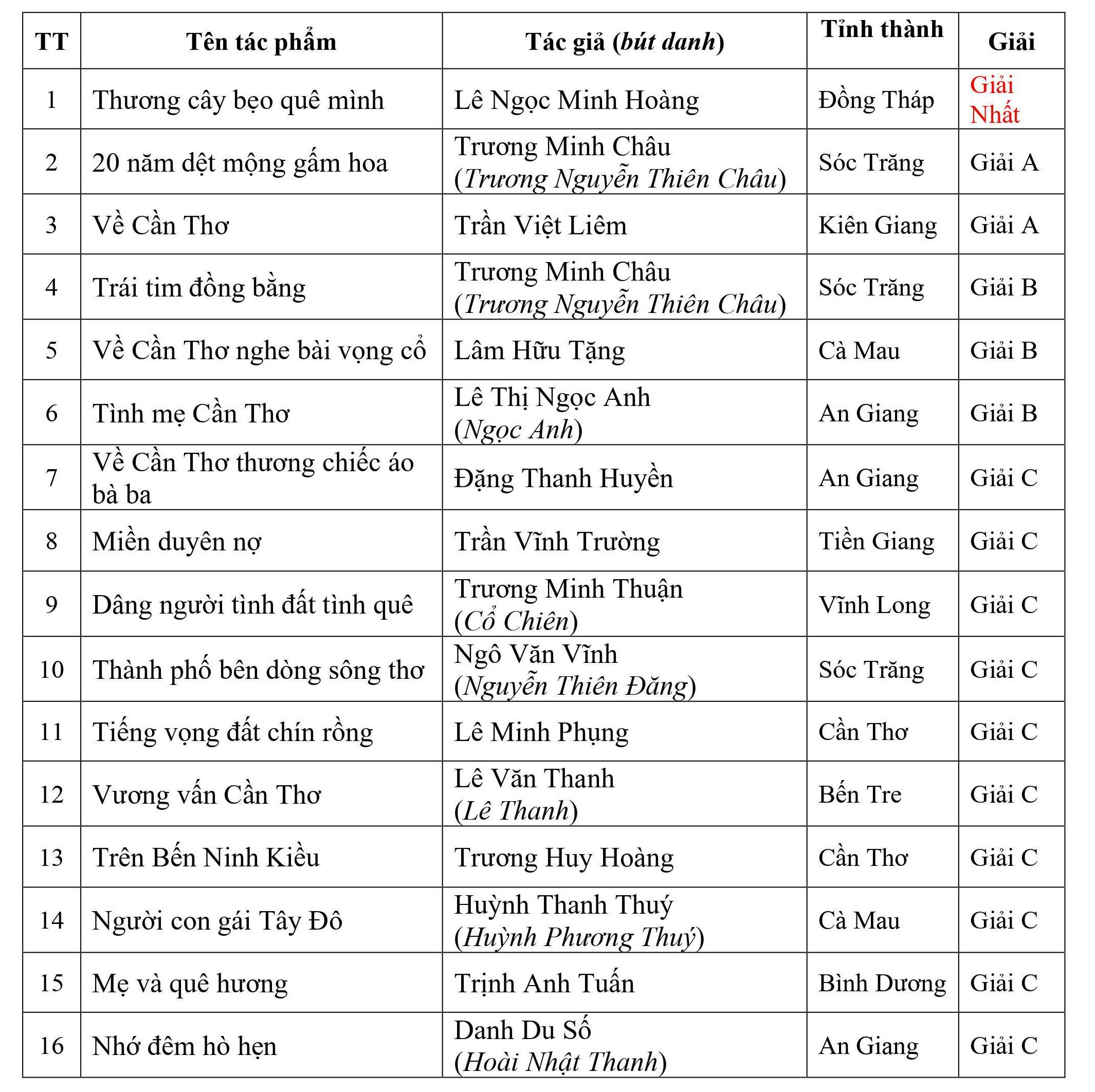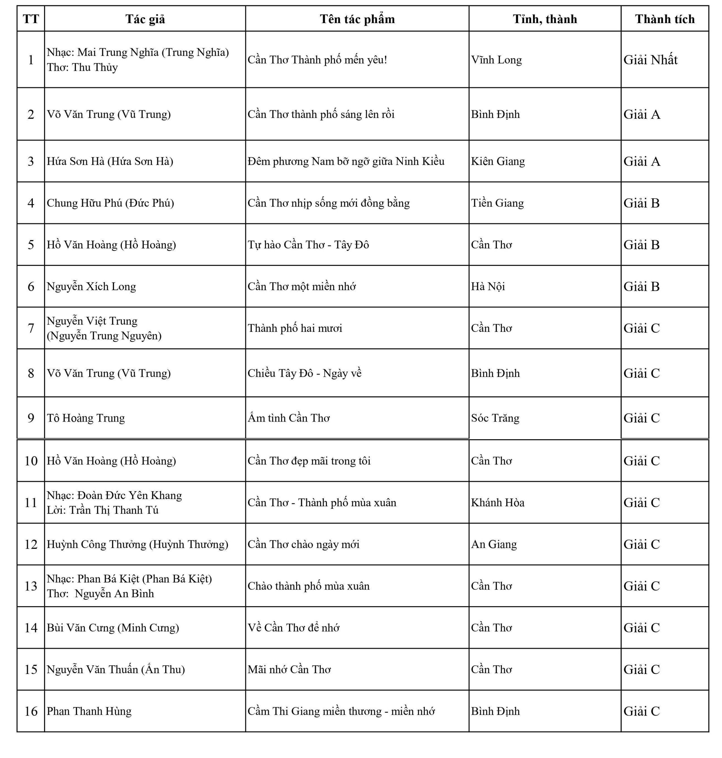 Trao giải 2 cuộc thi sáng tác ca khúc, bài vọng cổ chào mừng 20 năm TP Cần Thơ trực thuộc Trung ương