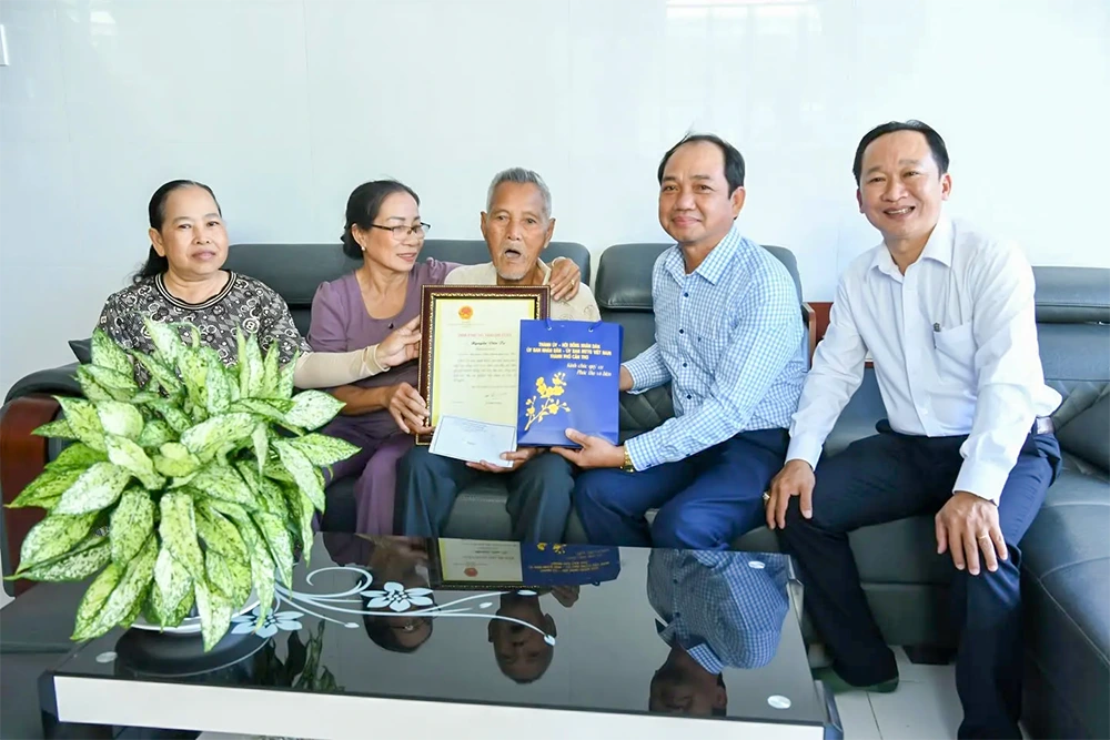 Trao thiếp mừng thọ 100 tuổi của Chủ tịch nước Lương Cường cho cụ ông Nguyễn Văn Tư