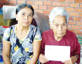 Mẹ con bà Ngô Thị Tý gởi lời cảm ơn đến bạn đọc đã giúp đỡ gia đình bà trong cảnh khốn khó. Ảnh: M.H