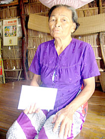 Bà Hoàng Thị Hai gởi lời cảm ơn đến bạn đọc sau khi nhận tiền từ đại diện Báo Cần Thơ.