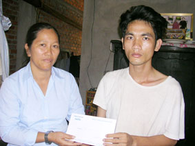 Đại diện Báo Cần Thơ trao tiền bạn đọc Báo Cần Thơ giúp chị Liêu Thị Ngọc Dung. |