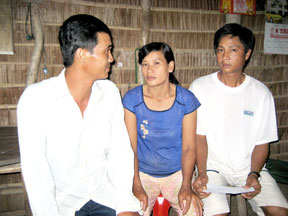 Đại diện chính quyền địa phương đã đến chứng kiến trao tiền bạn đọc cho vợ chồng anh Nguyễn Văn Mười. |