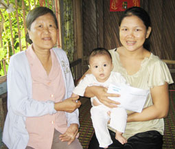 (CT)- Ngày 5-9-2008, đại diện Báo Cần Thơ đã trao 1.419.000 đồng cho gia đình cháu Dương Hoàng Ân ở ấp Thới Hưng, xã Giai Xuân, huyện Phong Điền, bị bệnh tim bẩm sinh, gia cảnh rất khó khăn (xem bài “Hơn 30 ngày tuổi đã mắc bệnh hiểm nghèo!” đăng trên Báo điện tử Cần Thơ ngày 25-7-2008). Số tiền này của các bạn đọc: Nguyễn Thị Ánh ở đường Hải Thượng Lãn Ông, quận Ninh Kiều: 700.000 đồng; Vũ Thị Mỹ Phương, Việt kiều Úc: 719.000 đồng. Đại diện Báo Cần Thơ cũng đến nhà bà Nguyễn Thị Tám ở ấp Thới Giai, xã Giai Xuân, huyện Phong Điền (xem bài “Tuổi già khốn khó, cô quạnh” đăng trên Báo điện tử Cần Thơ ngày 31-8-2008) trao 900.000 đồng. Số tiền này của một bạn đọc ở đường 3-2, quận Ninh Kiều: 200.000 đồng; một bạn đọc ở huyện Phong Điền: 400.000 đồng; Nguyễn Thị Ánh ở đường Hải Thượng Lãn Ông, quận Ninh Kiều: 300.000 đồng.