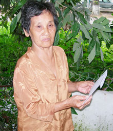 Bà Nguyễn Thị Tám gởi lời cảm ơn các bạn đọc đã gởi tiền giúp đỡ bà. |