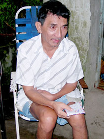 Anh Hiệp nhận tiền từ thiện do nhà hảo tâm gởi tặng. |