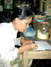 Bà Huỳnh Thị Kết (cô Huỳnh Thị Cẩm Tú) ký tên nhận tiền bạn đọc giúp đỡ. |