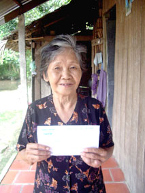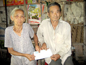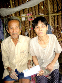 Bà Dương Thị Bảnh (vợ ông Dương Văn Cự) bị bệnh tái phát, gia đình đang khó khăn, nhận được số tiền bạn đọc gởi tặng đúng lúc, ông Cự rất cảm kích. |
